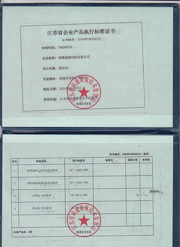 江蘇省企業(yè)產(chǎn)品執(zhí)行標(biāo)準(zhǔn)證書